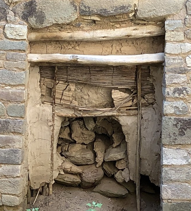 Room blocks were built by aggregating rectangular rooms with walls built of fine sandstone masonry and covered in mud plaster. Great house room blocks were multi-storied, in some cases reaching up to 4 or 5 floors! Upper story floors and exterior roofs were built on top of primary timber beams, which held secondary beams and layers of clay, mortar and sand to create a floor. Doors and vents had lintels built with smaller poles. Some doors have an interesting T shape, characteristic to the Southwest and of unknown meaning.